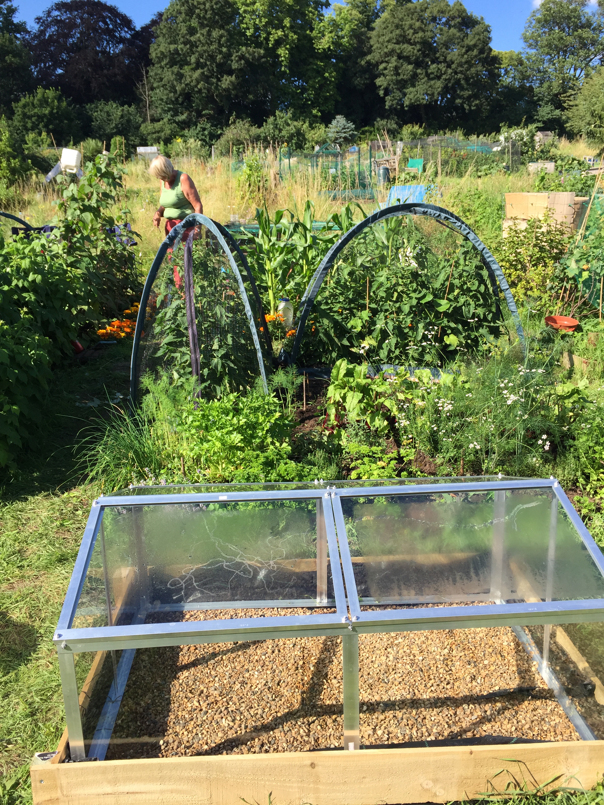 The cold frame is much too hevy to steal, but we did lose have one of the four Popadomes we bought. It was stolen in the night. We soon learned that you need to keep things secure on an allotment.